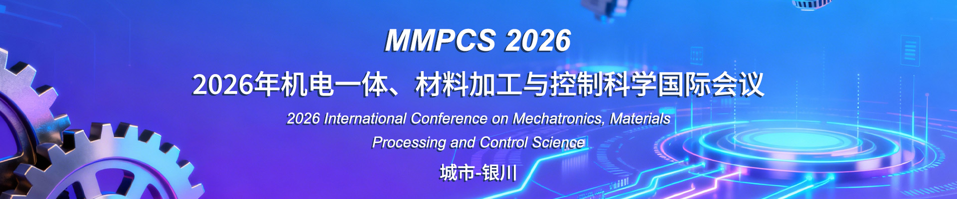 The International Conference on Mechatronics, Materials Processing and Control Science (MMPCS 2026) will be held in Yinchuan, China in 2026. The conference aims to provide a platform for experts, scholars, engineering technicians, and technical R&D personnel engaged in related research to share scientific research achievements and cutting-edge technologies, understand academic development trends, broaden research ideas, strengthen academic research and exploration, and promote the industrialization cooperation of academic achievements. The conference cordially invites experts, scholars, business professionals, and other relevant personnel from domestic and foreign universities and research institutions to attend and exchange ideas.